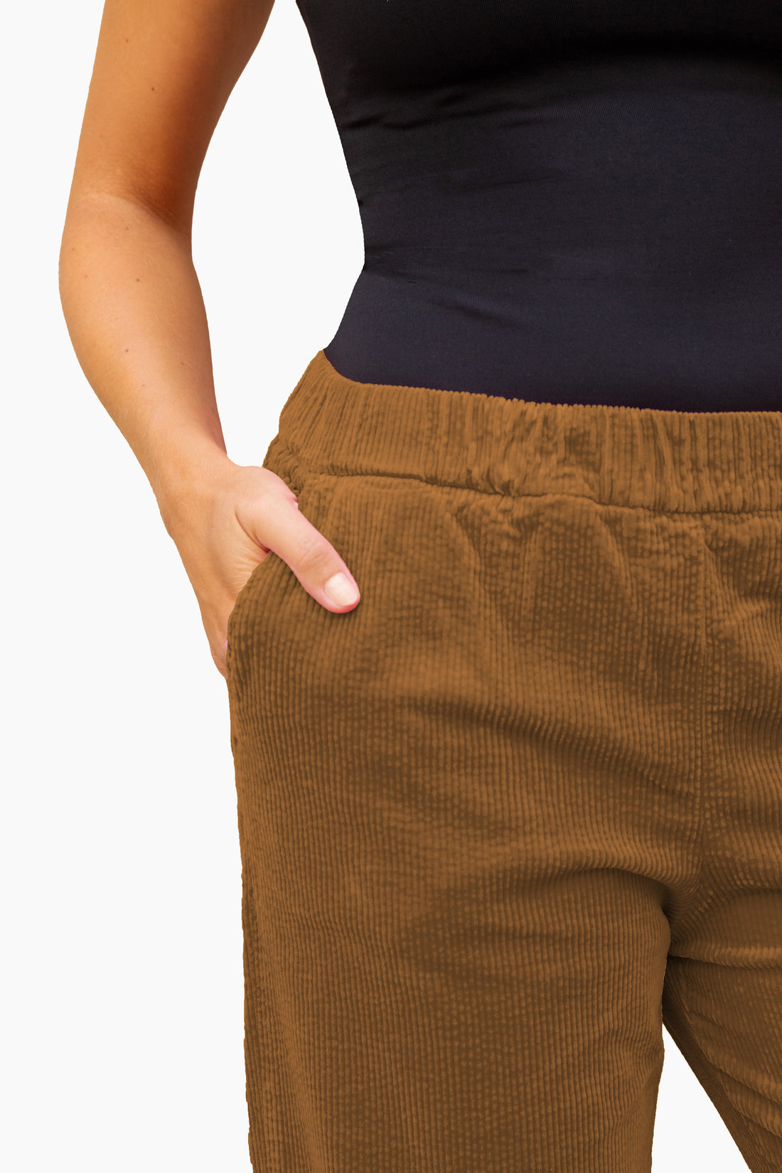Coupe Loose, 7/8 ème, Taille Élastiquée Dos. Larges Côtes Velours - 100% COTON