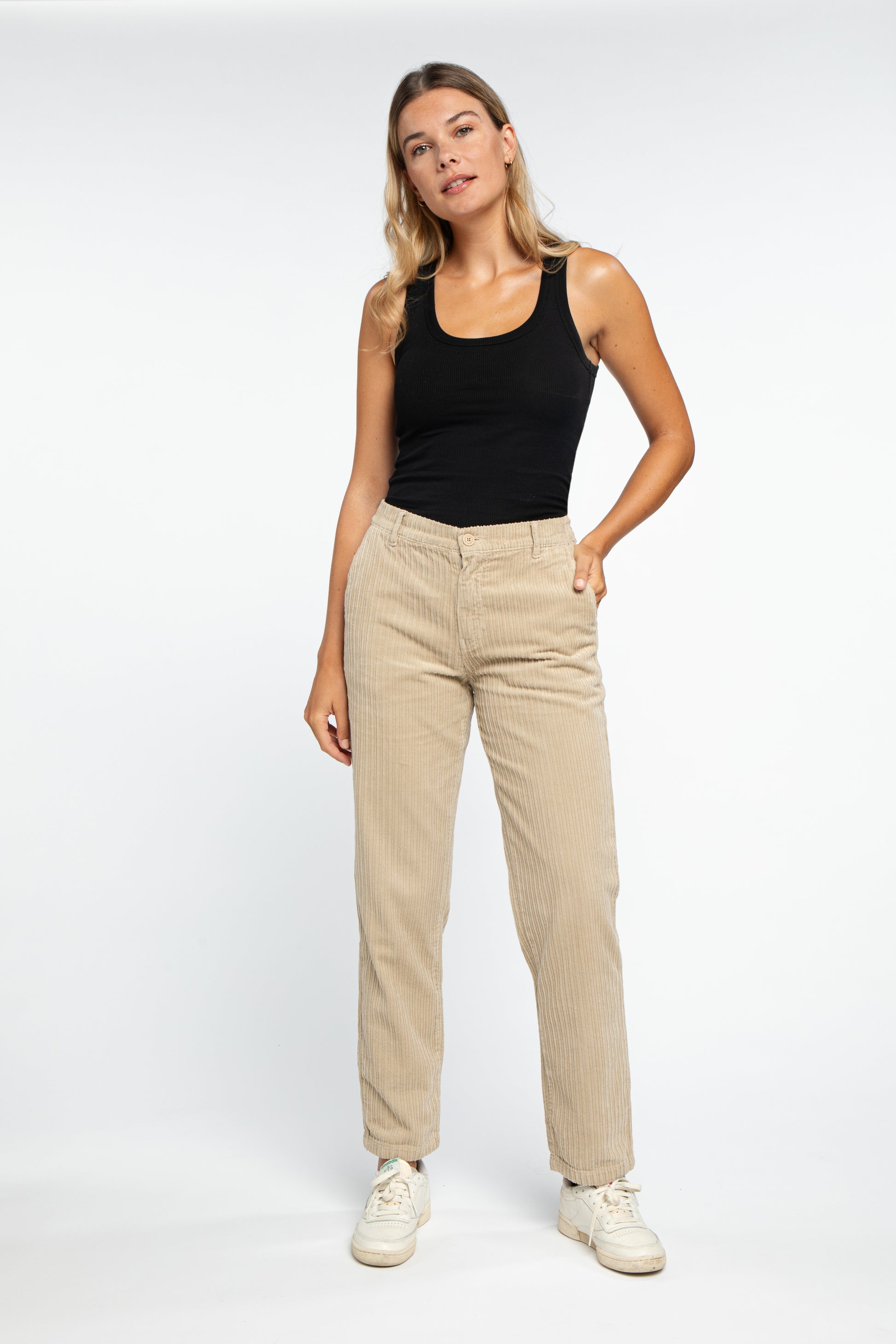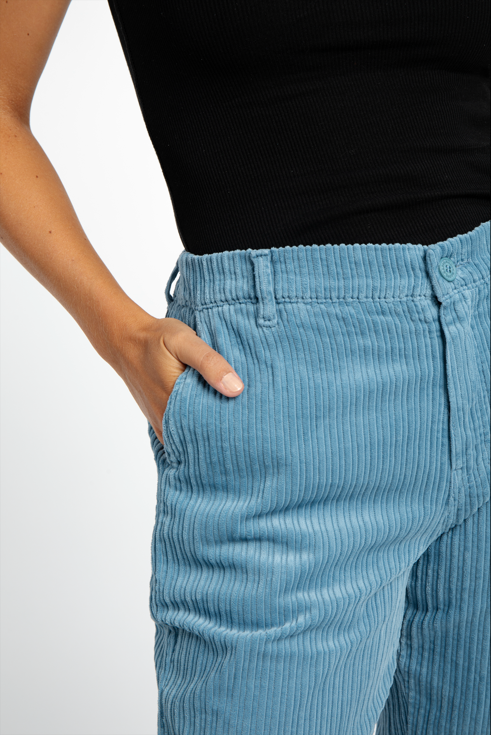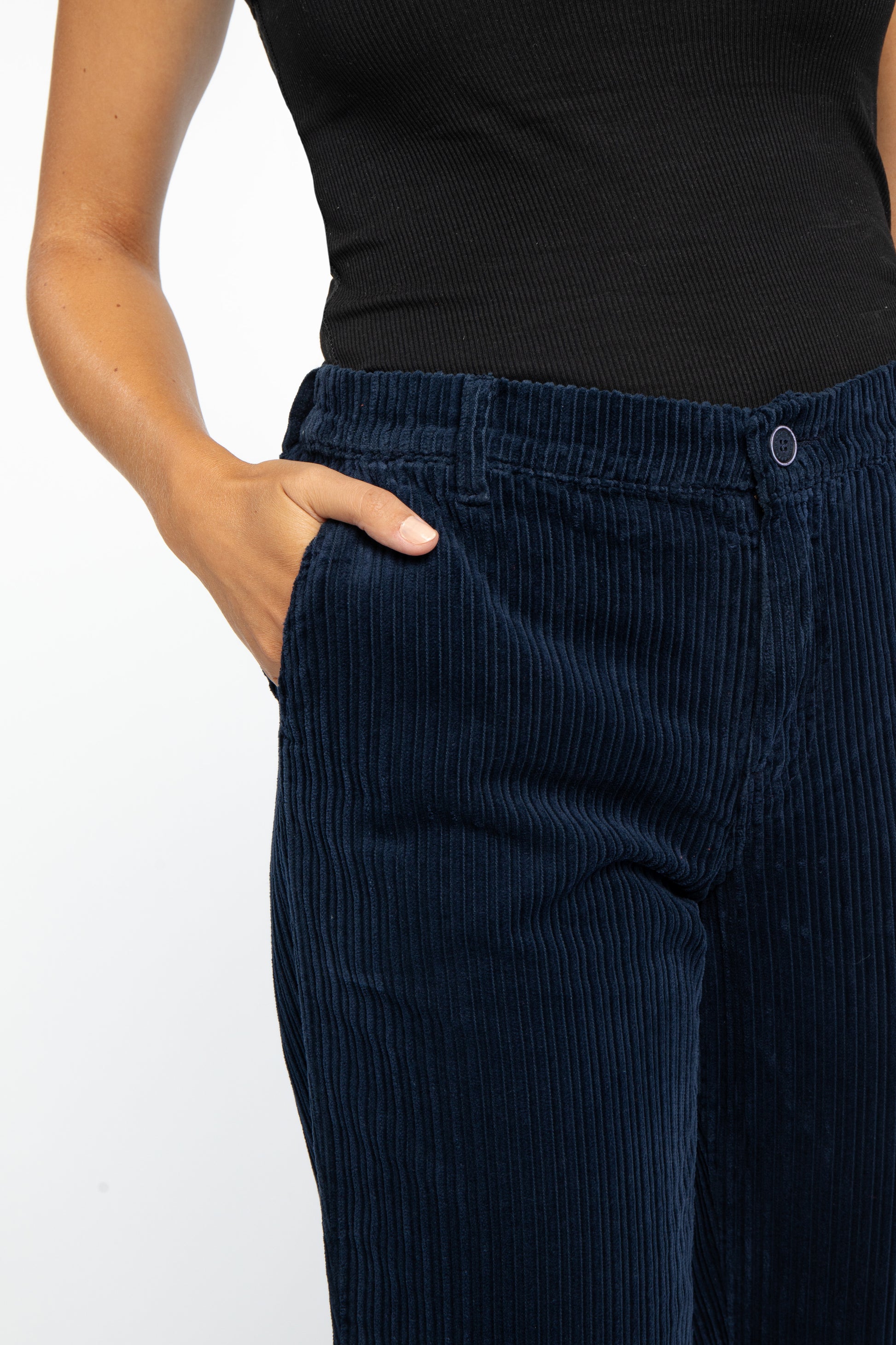 Coupe Loose, 7/8 ème, Taille Élastiquée Dos. Larges Côtes Velours - 100% COTON